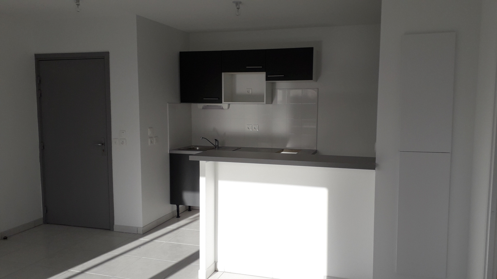 L'appartement de Type 2, au premier étage exposé sud, se compose d'un belle pièce de vie de 25 m² avec coin cuisine équipé de meubles hauts, meubles bas et plaque vitrocéramique donnant sur le balcon, d'une chambre de 11 m² avec placard et d'une salle d'eau avec WC