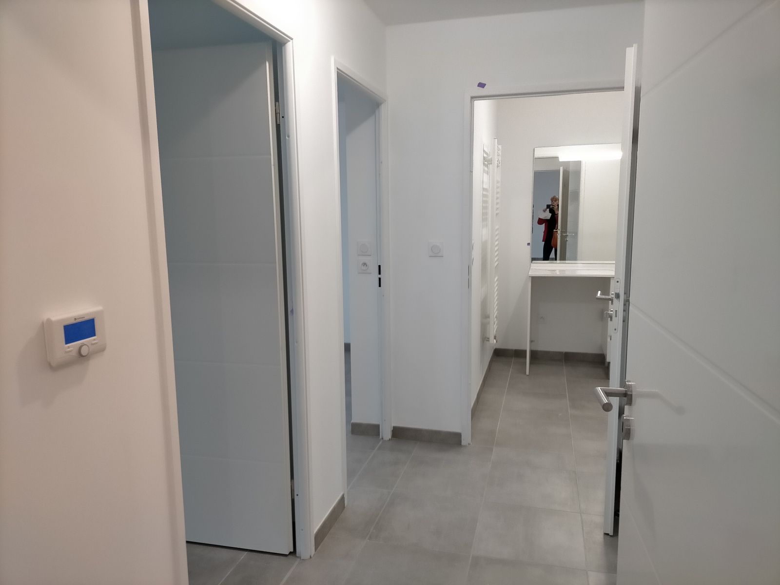 L'appartement T3 de 63 m² se compose d'une entrée avec placard, d'une lumineuse pièce de vie de 26 M2 avec un coin cuisine équipé, le tout donnant sur le balcon, de deux belles chambres (13 m² et 11 m²) avec un grand placard chacune, d'une salle de bains avec lave linge, d'un WC séparé et d'un cellier de 2m².